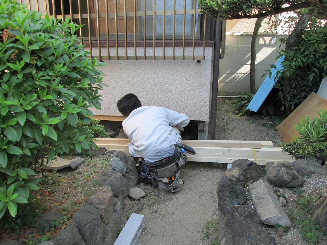 そんなことは全く関係なさそうに現場の庭の片隅にはいつの間にか彼岸花が、「毎年咲くねん。」とご主人。